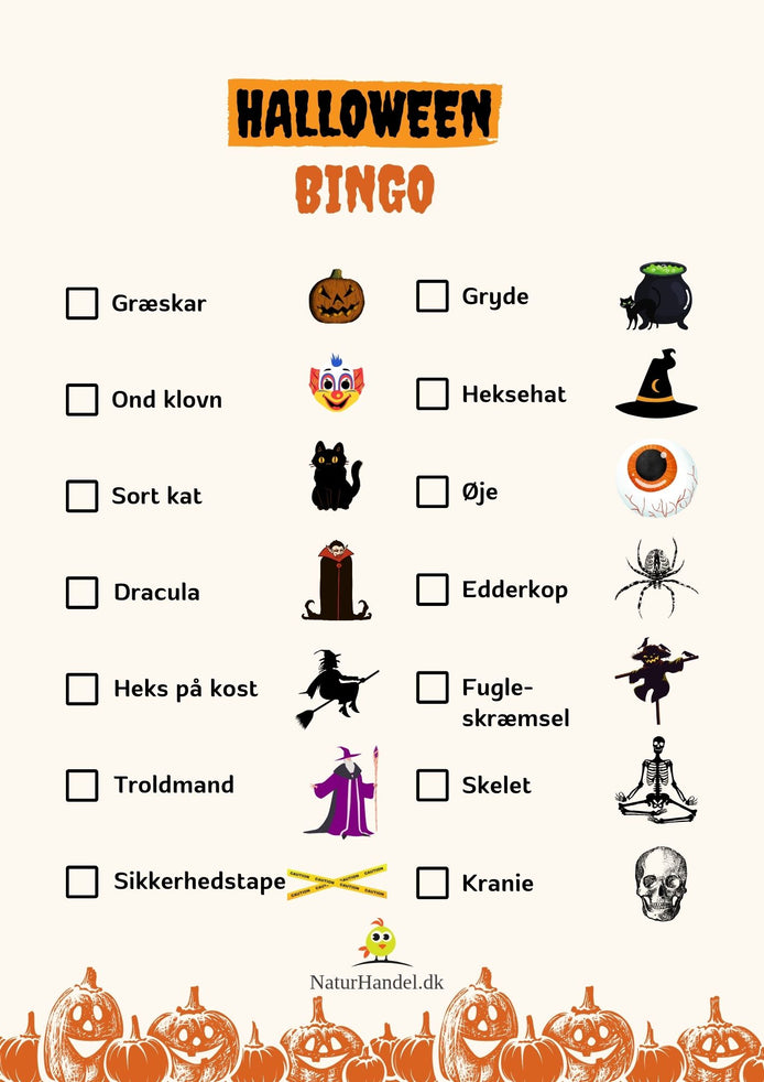 Afkryds de ting du finder på din tur rundt til Halloween :)