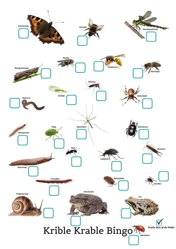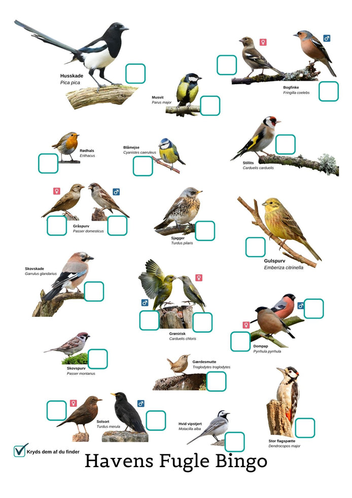 Min plakat er blevet forvandlet til en NaturBingo. Kan bruges inde (Som f.eks. afkrydsning ved foderbrættet) og ude på tur.