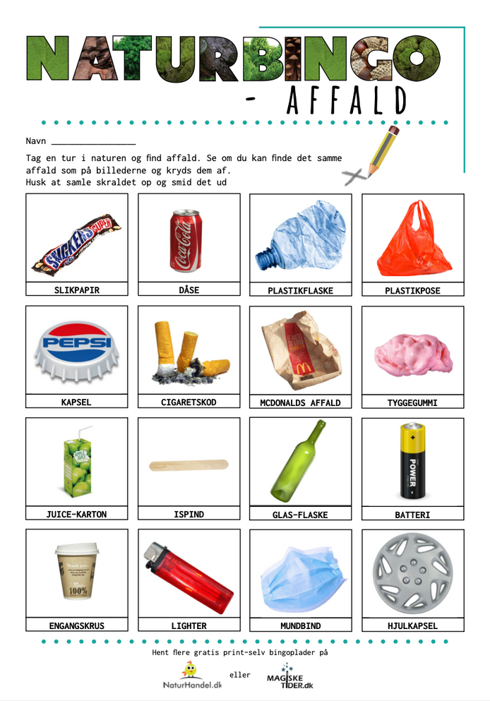 Supplér årets affaldsindsamling med en bingoplade med affald.