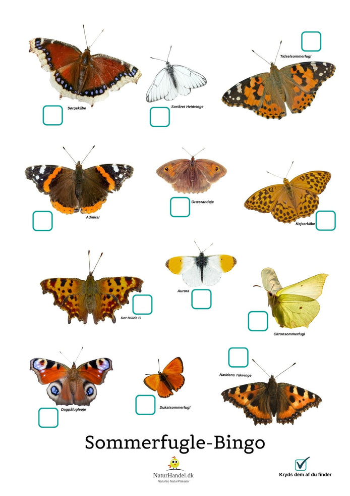 Min plakat er blevet forvandlet til en NaturBingo. Alle Danmarks mest populære sommerfugle skal nu findes.