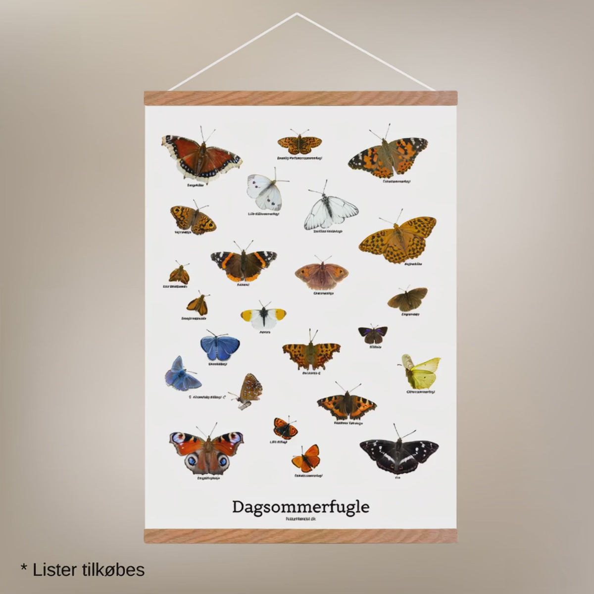 Vores Sommerfugle Plakat viser en forbløffende diversitet af sommerfugle, fra de kendte dagpåfugleøjer til de mere sjældne kejserkåber. Hver sommerfugl er fotograferet, så dens individuelle karakter, vingeudsmykning og særpræg fremhæves. Plakaten er designet til at vække glæde, fascination og give et indblik i de mange smukke arter, der danser i den danske natur.
